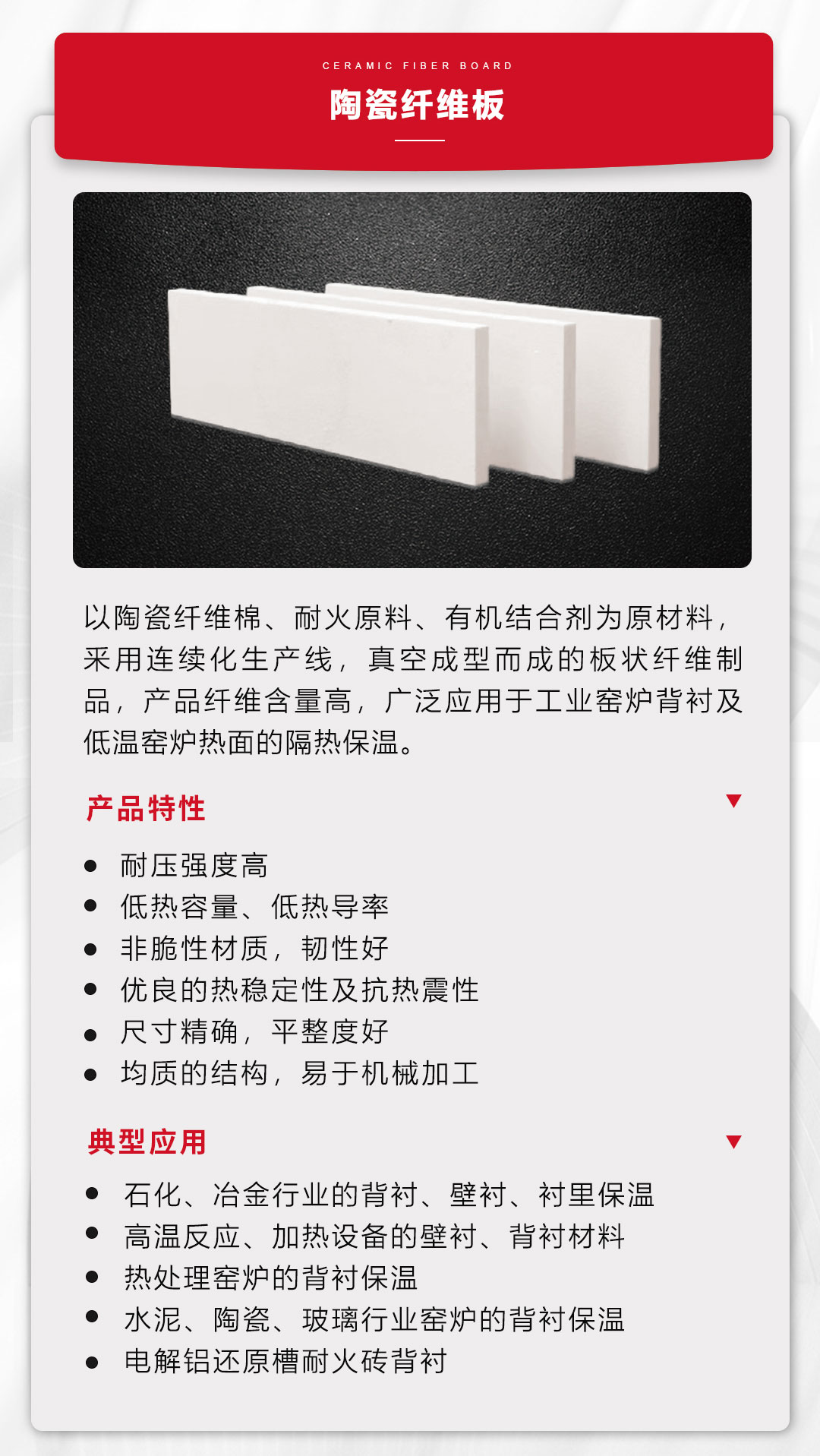 陶瓷纖維是一種纖維狀輕質(zhì)耐火材料,具有重量輕、耐高溫、熱穩(wěn)定性好、導熱率低、比熱小及耐機械震動等優(yōu)點,因而在機械、冶金、化工、石油、陶瓷、玻璃、電子等行業(yè)都得到了廣泛的應用。在節(jié)能降碳的大環(huán)境下,比傳統(tǒng)耐材節(jié)能達10-30%的陶瓷纖維成為眾多用戶的選擇。